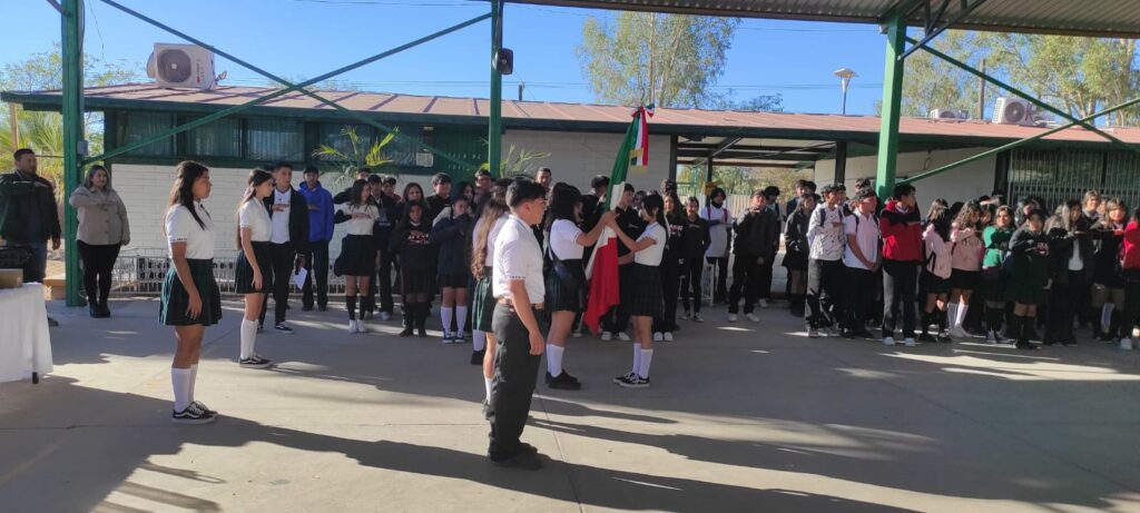 La fracción de un partido político del Congreso del Estado, fue invitada a participar en la ceremonia cívica de los lunes en el plantel, y como siempre que visitan a esta institución no llegaron con las manos vacías.