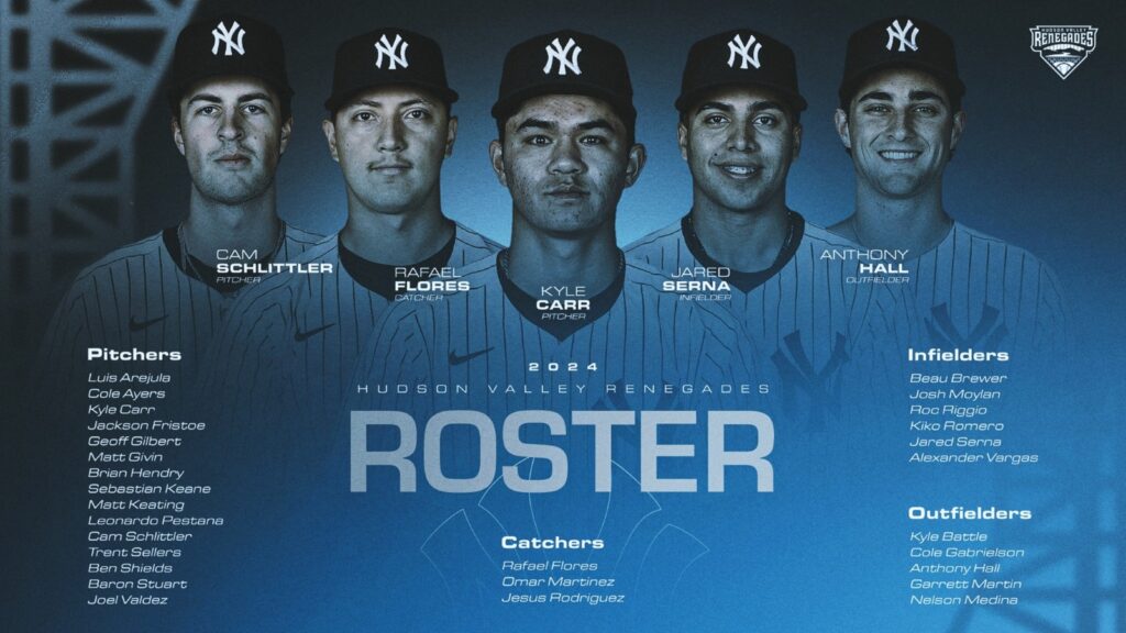 Carr fue una selección de tercera ronda de los Yankees en el Draft de jugadores de primer año de 2023 de Palomar College. Los regresadores Cole Ayers, Leonardo Pestana, Cam Schlittler, Baron Stuart y Joel Valdez brindarán una sólida experiencia al personal. Luis Arejula, Jackson Fristoe, Geoff Gilbert, Sebastian Keane y Matt Keating harán su debut en la temporada regular en Hudson Valley después de registrar salidas clave en los playoffs de 2023.