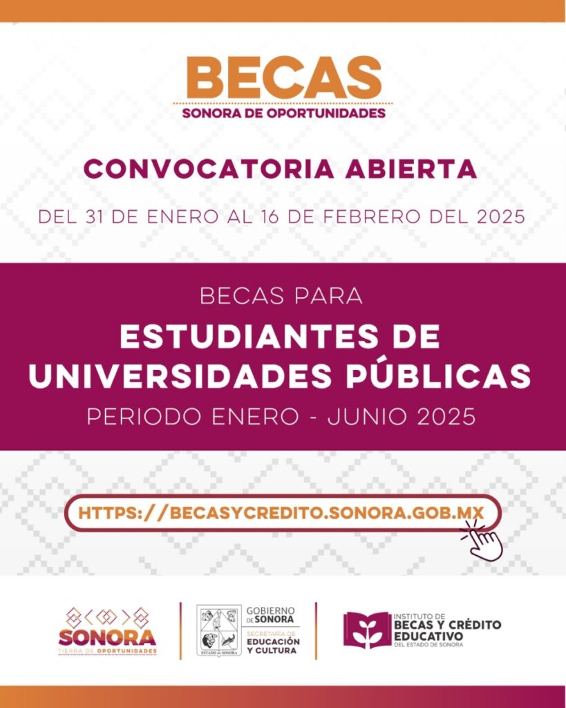 El director general del Instituto de Becas y Crédito Educativo del Estado de Sonora (Ibcees) invitó al alumnado a consultar los requisitos de la convocatoria en el portal electrónico www.becasycredito.sonora.edu.mx donde también deberán completar el registro de manera virtual.