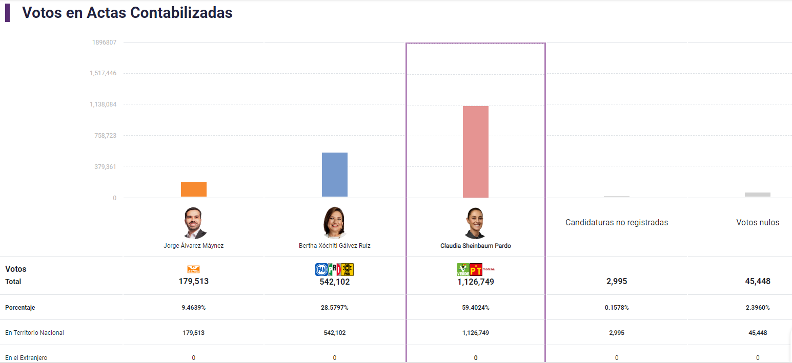 El Programa de Resultados Electorales Preliminares (PREP) del Instituto Nacional Electoral (INE) ha comenzado a actualizar constantemente los datos de la jornada electoral 2024