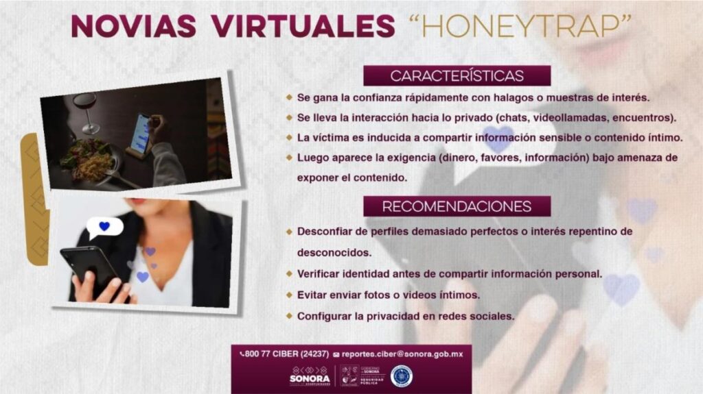 Hermosillo, Sonora.- Con el objetivo de mantener informada a la ciudadanía y prevenir que sea víctima de delitos cibernéticos, el Gobierno de Sonora alertó sobre una nueva modalidad denominada “Novias Virtuales” o Honeytrap.