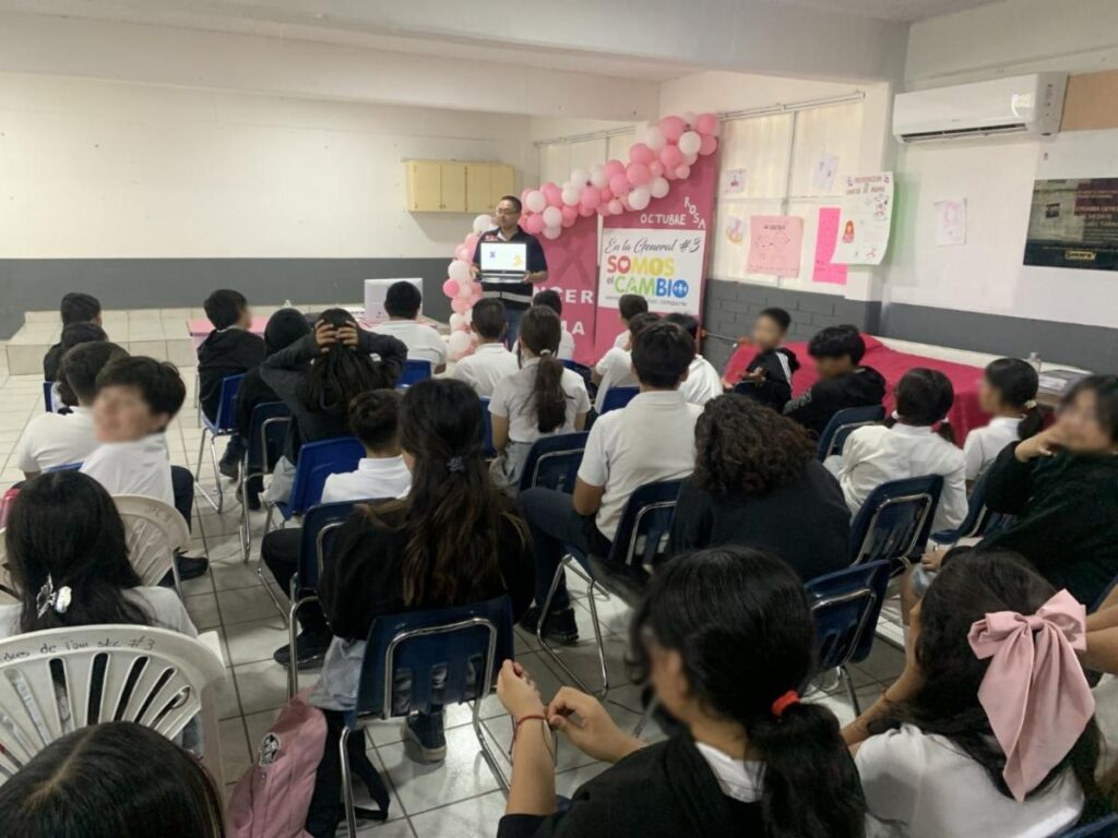 En San Luis Río Colorado, el Centro Estatal de Prevención del Delito y Participación Ciudadana impartió a las y los alumnos de la escuela secundaria General 3, la plática para prevenir la violencia digital con énfasis en el ciberacoso y ciberbullying.