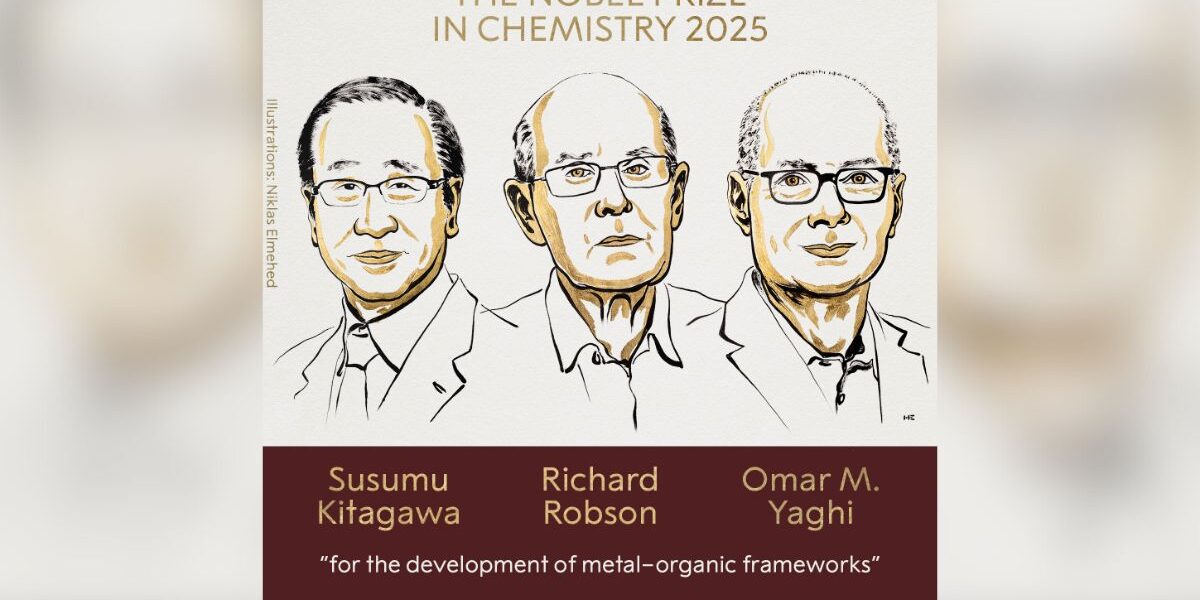 El Premio Nobel de Química 2025 ha sido concedido al japonés Susumu Kitagawa, el británico Richard Robson y el jordano Omar M. Yaghi “por el desarrollo de estructuras metal-orgánicas (MOF)”, según anunció hoy la Real Academia de las Ciencias Sueca.