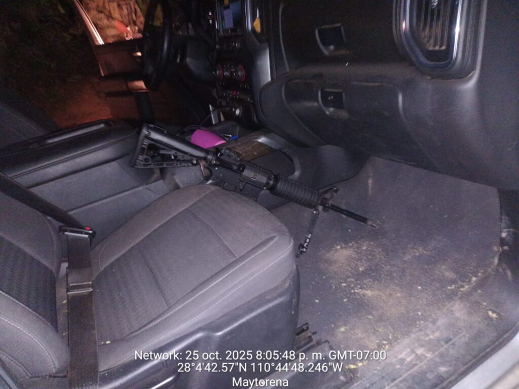 A través de boletín de prensa, la Secretaría de Seguridad Pública estableció que, durante las acciones de prevención y combate al delito, se realizó la detención de un menor de edad, así como de José “N”, Alvin “N” y Joel “N”, de 25, 23 y 18 años de edad, respectivamente, quienes fueron sorprendidos portando armas de fuego en la comunidad de Maytorena, en la zona rural de este municipio.