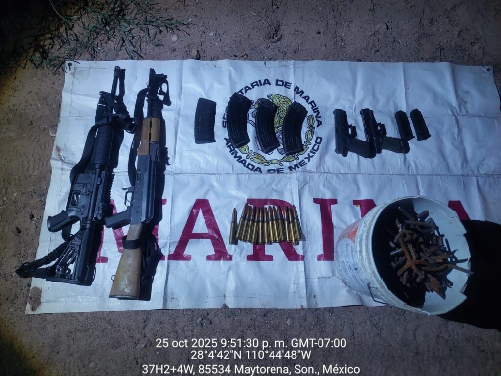 Cuatro personas fueron detenidas y cuatro armas de fuego quedaron fuera de circulación como resultado de un operativo coordinado entre elementos de la Policía Estatal de Seguridad Pública (PESP) y la Secretaría de Marina (Semar) en Empalme.