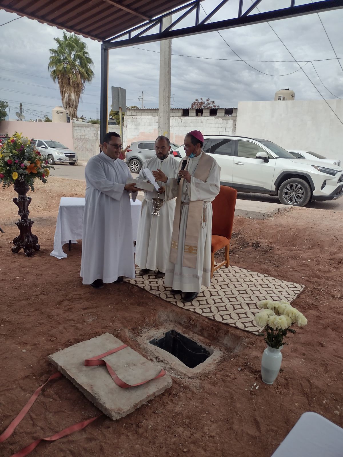 Emotivo el momento cuando el Señor Obispo de la Diócesis de Ciudad Obregón, junto a sacerdotes que integran el Decanato de Sam Ambrosio procedió a la bendición de colocación de la primera piedra en la construcción del templo al Divino Niño Jesús, que dependerá de la Iglesia de San Judas Tadeo.