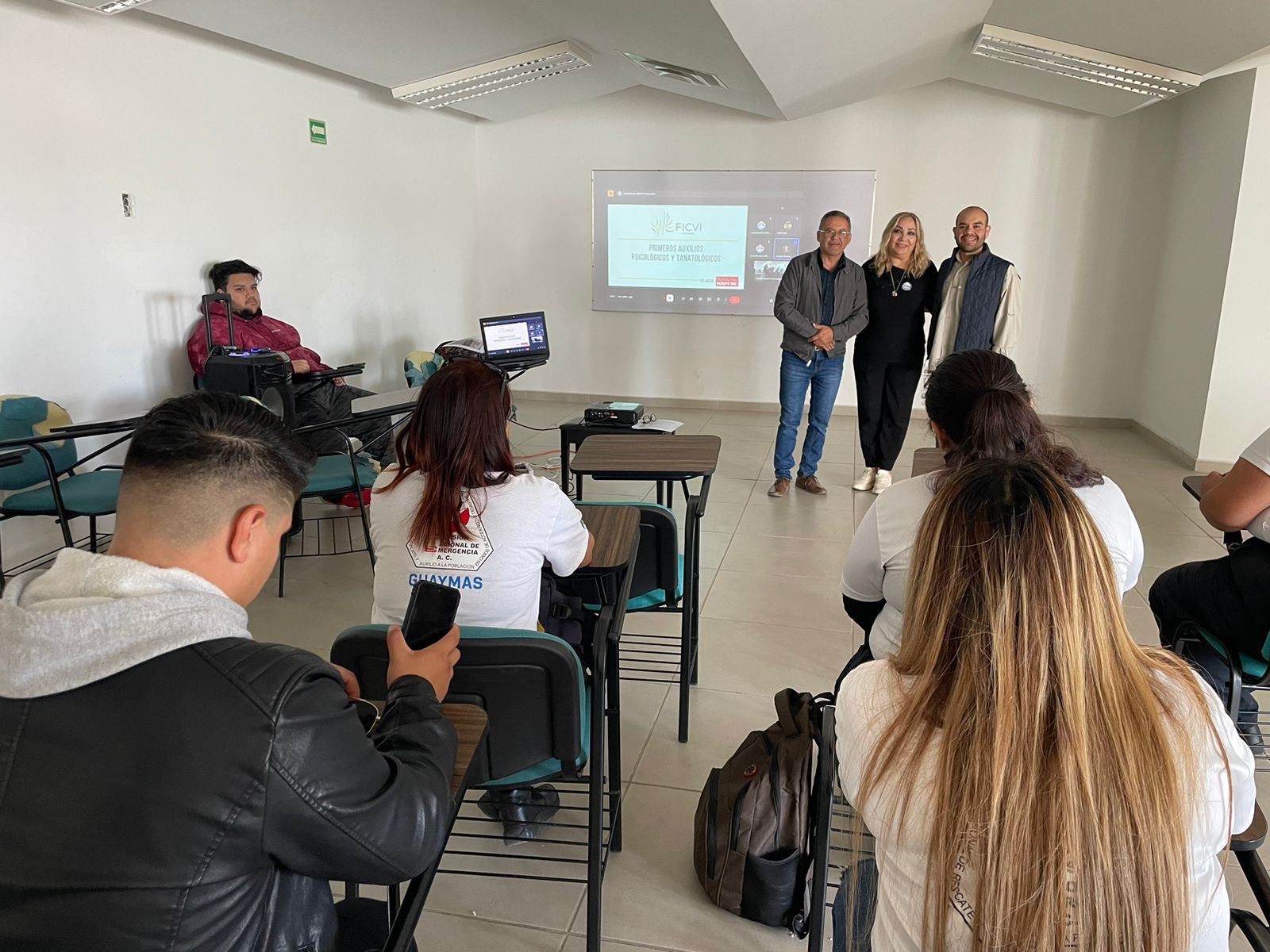 Alcaraz Sánchez dijo que es por ello, en esta primera etapa se brindó a elementos de Comisión Nacional de Emergencias el conversatorio con especialistas de la fundación Mapfre y FICVI vía zoom por medio de las tecnologías, en el curso gratuito de primeros auxilios psicológicos y tanatológicos.