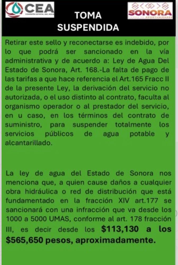 El proceso de notificación y cortes a usuarios morosos iniciará la Comisión Estatal del Agua en al menos 12 colonias de Guaymas, como parte de un operativo de recuperación por adeudos acumulados.