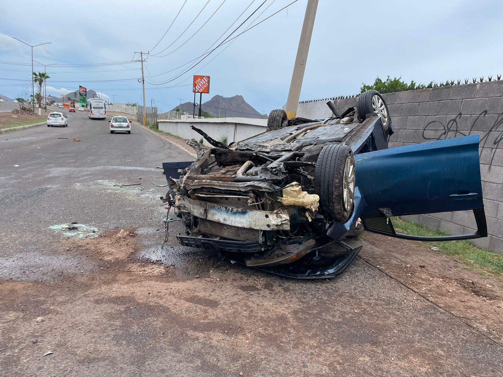 Dos personas, una mujer y un hombre resultaron heridos en impresionante choque de dos automóviles, donde uno de ellos se impactó contra una palma para posteriormente volcar, en hechos ocurridos sobre la carretera Internacional México 15, frente a la colonia Loma Linda durante la mañana de ayer domingo 21 de julio.