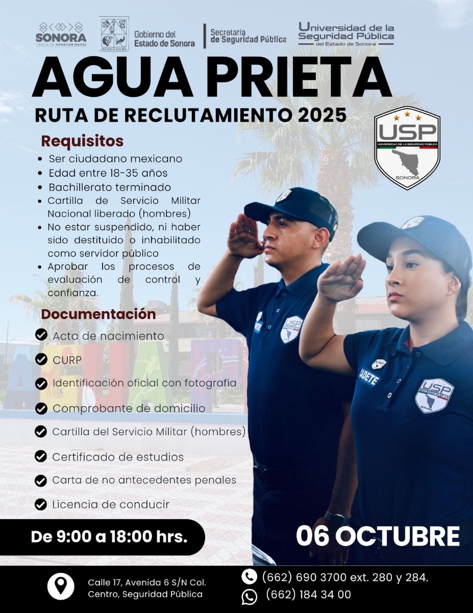 Personal de la Universidad de la Seguridad Pública recorrerá, en una primera etapa, Agua Prieta, Cananea, Santa Cruz, Nogales, Ímuris, Magdalena y Santa Ana, para invitar a las y los interesados en sumarse a la Policía Estatal y demás corporaciones