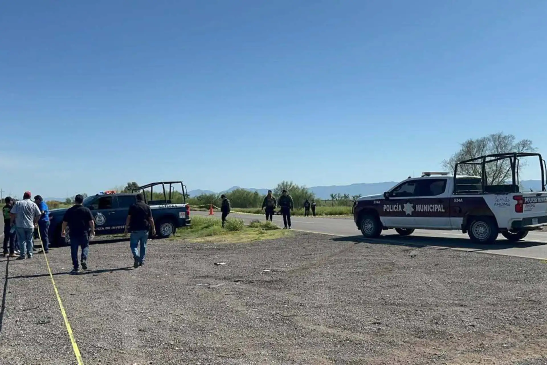 Elementos de la Policía Municipal de Ahome, junto con personal del Ejército Mexicano y unidades de emergencias, acordonaron la zona mientras esperaban la llegada de los peritos y agentes investigadores de la Fiscalía General de Sinaloa, quienes se encargaron de realizar las primeras diligencias y el levantamiento de los cuerpos.
