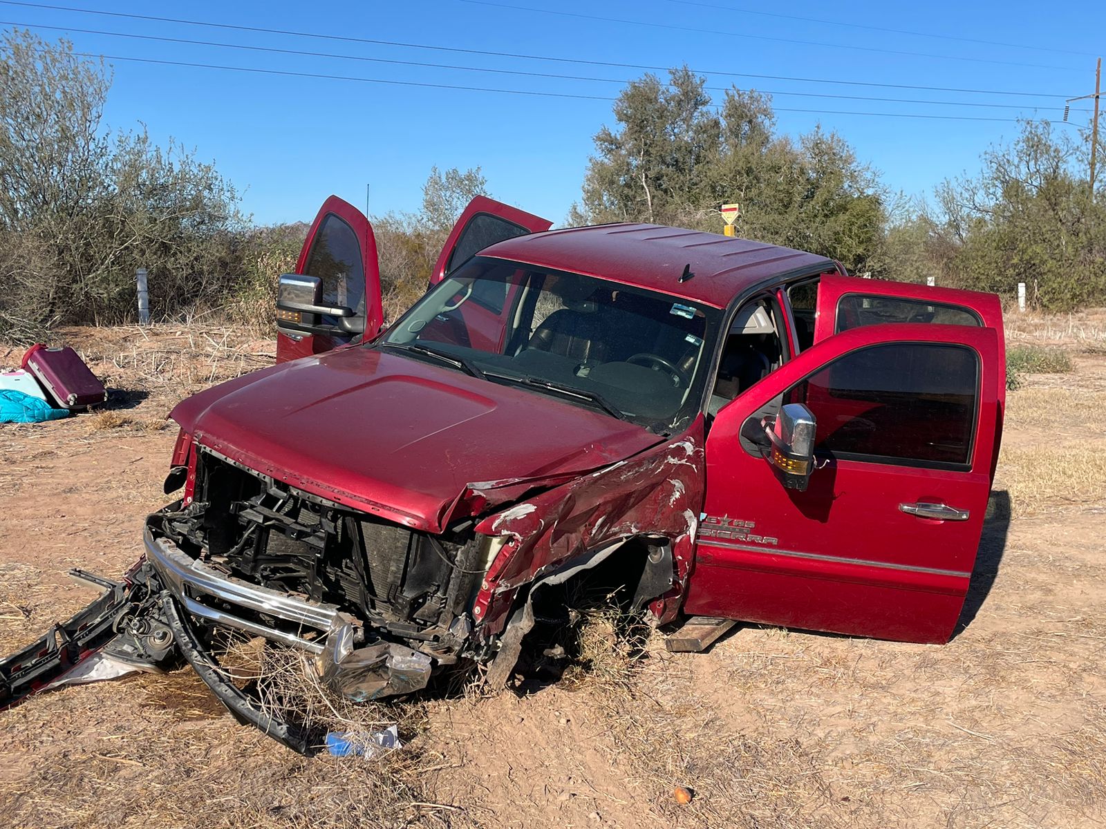 Paramédicos de Caminos y Puentes Federales (Capufe) llegaron al sitio del accidente y procedieron a brindarle auxilio a los ocupantes de un pick-up GMC “Sierra”, en color guinda, que quedó totalmente fuera del camino y destrozado. Afortunadamente ninguna de estas personas resultó con lesiones, solo crisis nerviosa.