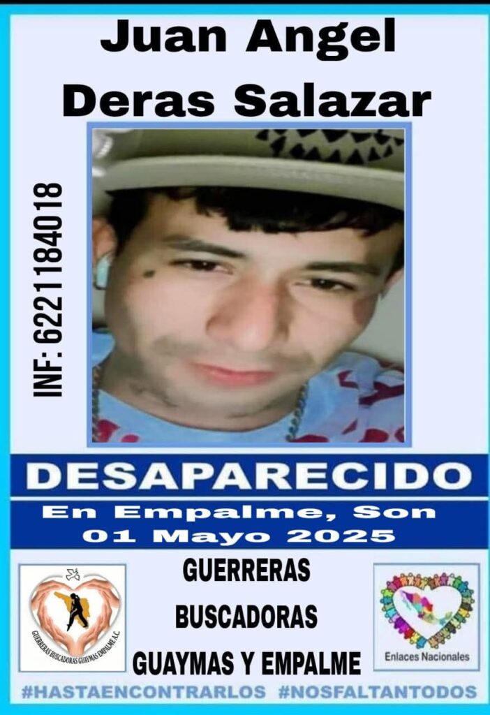 Juan Ángel Deras Salazar, de 25 años de edad, con domicilio en la colonia Pesqueira salió de su casa el pasado uno de mayo y ya no regresó.