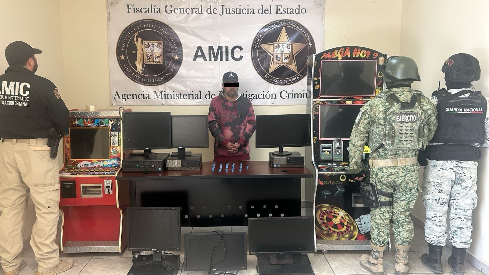 Los indicios asegurados en el lugar son 16 envoltorios de la droga conocida como “cristal”, dos máquinas tragamonedas con juegos de azar, cinco monitores con sus unidades centrales de procesamiento (CPU, por sus siglas en inglés), que quedaron a disposición del agente del Ministerio Público