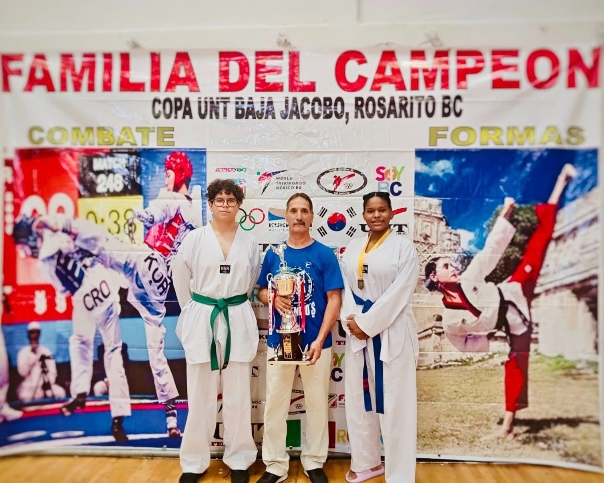 San Luis Río Colorado, Sonora.- Benjamín Emiliano Villarreal Samaniego y África Logan Aparicio, estudiantes de la Universidad Tecnológica de San Luis Río Colorado (Utslrc), conquistaron dos medallas de oro, cada uno, en la 9na. Copa UNT Baja Jacobo, avalada por la Federación Mexicana de Taekwondo y realizada en Baja California.