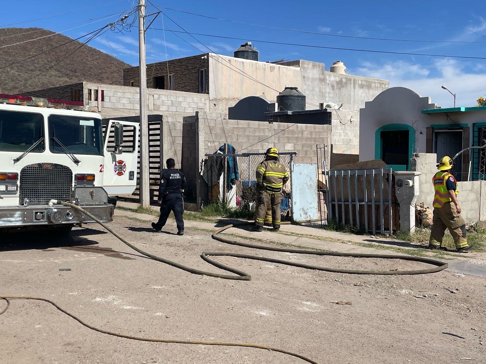 Personal de guardia de la Estación Norte del Cuerpo de Bomberos de Guaymas se trasladó inmediatamente al lugar del siniestro, tras el llamado de emergencia recibido en la línea 911, por parte de vecinos del sector.
