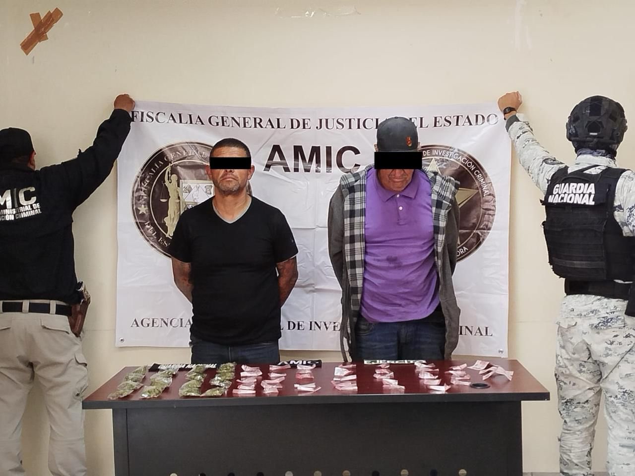 San Luis Río Colorado, Sonora.- Como resultado de un operativo conjunto entre la Agencia Ministerial de Investigación Criminal (AMIC), Secretaría de la Defensa Nacional (DEFENSA) y Guardia Nacional (GN), se ejecutó una orden de cateo en San Luis Río Colorado, donde se aseguró a dos sujetos y diversos indicios relacionados con el delito de narcomenudeo.
