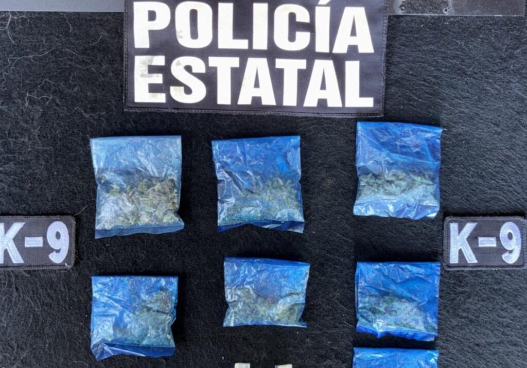 Binomios caninos K-9 de la Policía Estatal, especialistas en la detección de narcótico, armas de fuego y divisas, colaboraron en la detención de Luis “N”, de 32 años de edad, con 10 bolsas con narcótico en la colonia Solidaridad. Asimismo, en el sector El Llano lograron el hallazgo de vapeadores con sustancia ilícita.