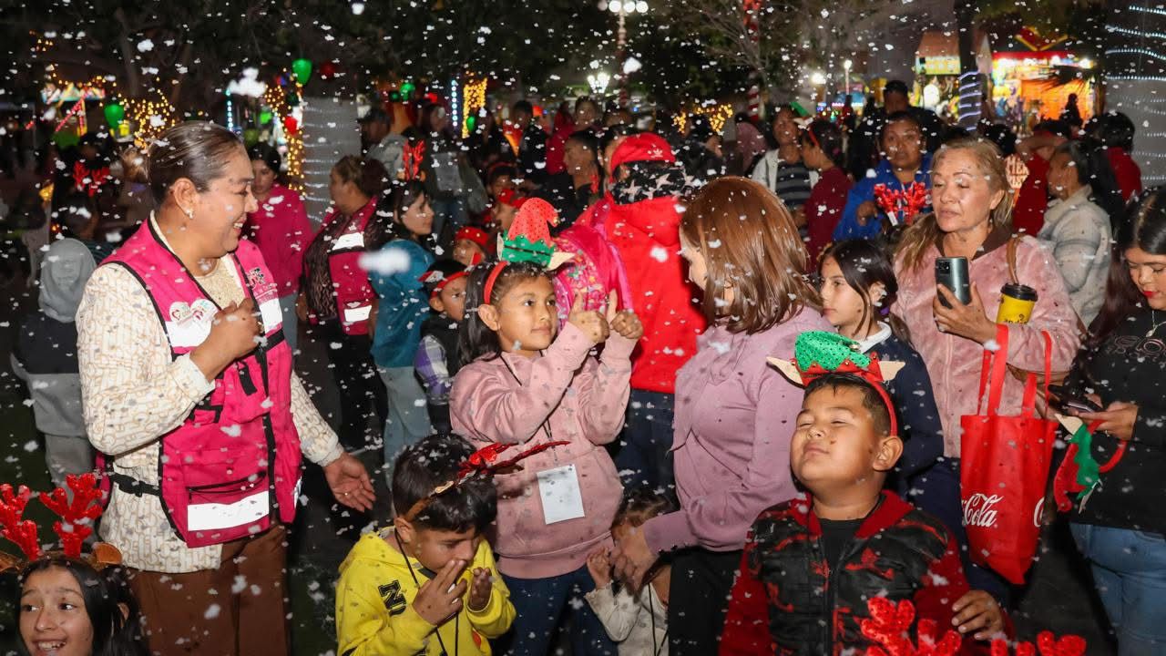 Córdova González destacó que con el apoyo del Sistema para el Desarrollo Integral de la Familia (DIF) y dependencias como Desarrollo Social, Desarrollo Económico y Turístico, Festividades así como de Protección Civil, se mantuvo un programa que incluyo cuenta cuentos, cine, y la nieve artificial.