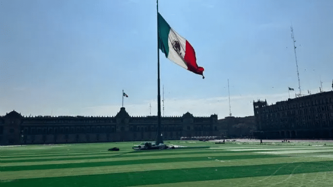 El Zócalo ya está alfombrado de verde para una clase de futbol masiva que pretende incentivar la activación física y el espíritu de comunidad entre los habitantes y visitantes de la Ciudad de México.