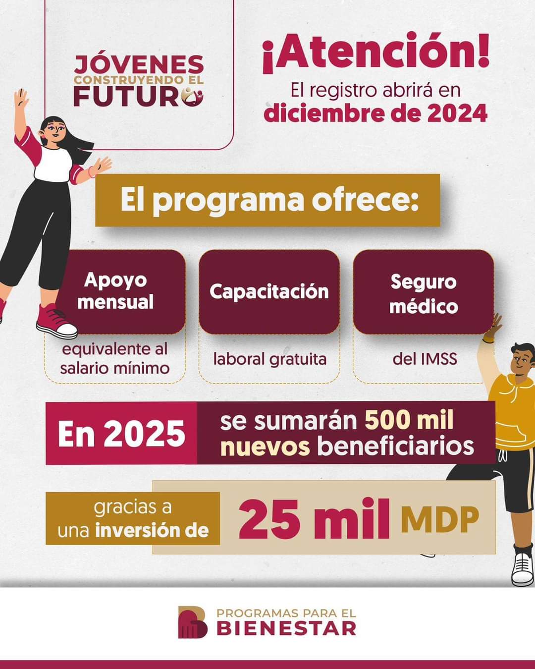 Con garantía de sueldo, capacitación y seguridad social, la Secretaría del Bienestar iniciará inscripción de Jóvenes Construyendo el Futuro en diciembre.. Octavio Almada Palafox, delegado de la dependencia federal invitó a personas de entre 18 y 25 años a estar atentos para sumarse a las más de 2 millones de jóvenes que han participado en el programa.