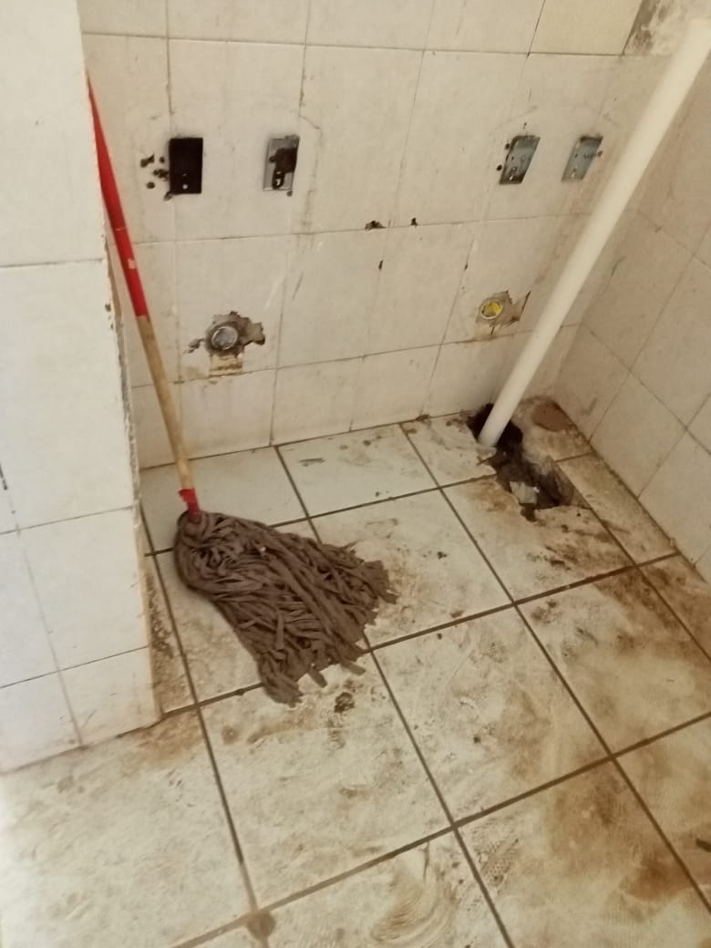 Mandaron fotos donde se aprecia que todos los baños están llenos de heces, agua y basura acumulada en botes y piso.