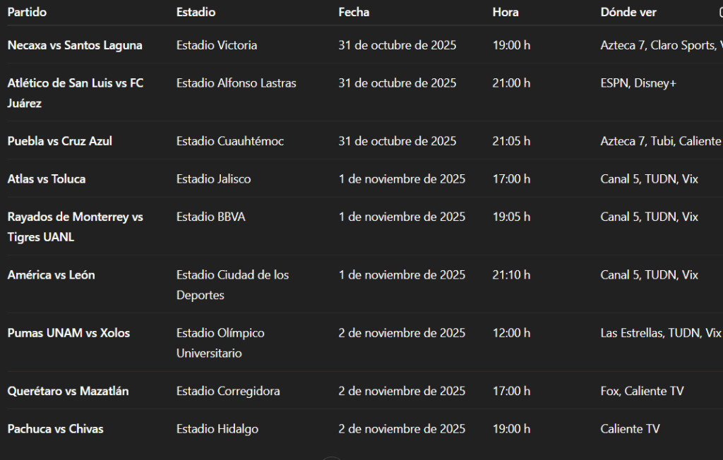 Liga MX donde y a que hora se puede ver