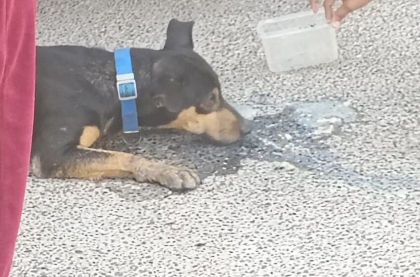 Estaba convulsionando del dolor y con espuma en el hocico después de que comiera sopa en una bolsa que alguien le dejó cerca de manera intencional.