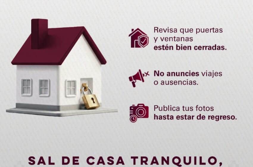 Indicó que, para la prevención de robos, es importante asegurar todas las puertas y ventanas antes de salir; no dejar objetos de valor a la vista desde el exterior; pedir a un vecino de confianza que recoja la correspondencia y revise el domicilio de manera periódica; evitar publicar en redes sociales detalles sobre los días de ausencia y, en caso de contar con sistema de alarma o cámaras, verificar que se encuentren en correcto funcionamiento.