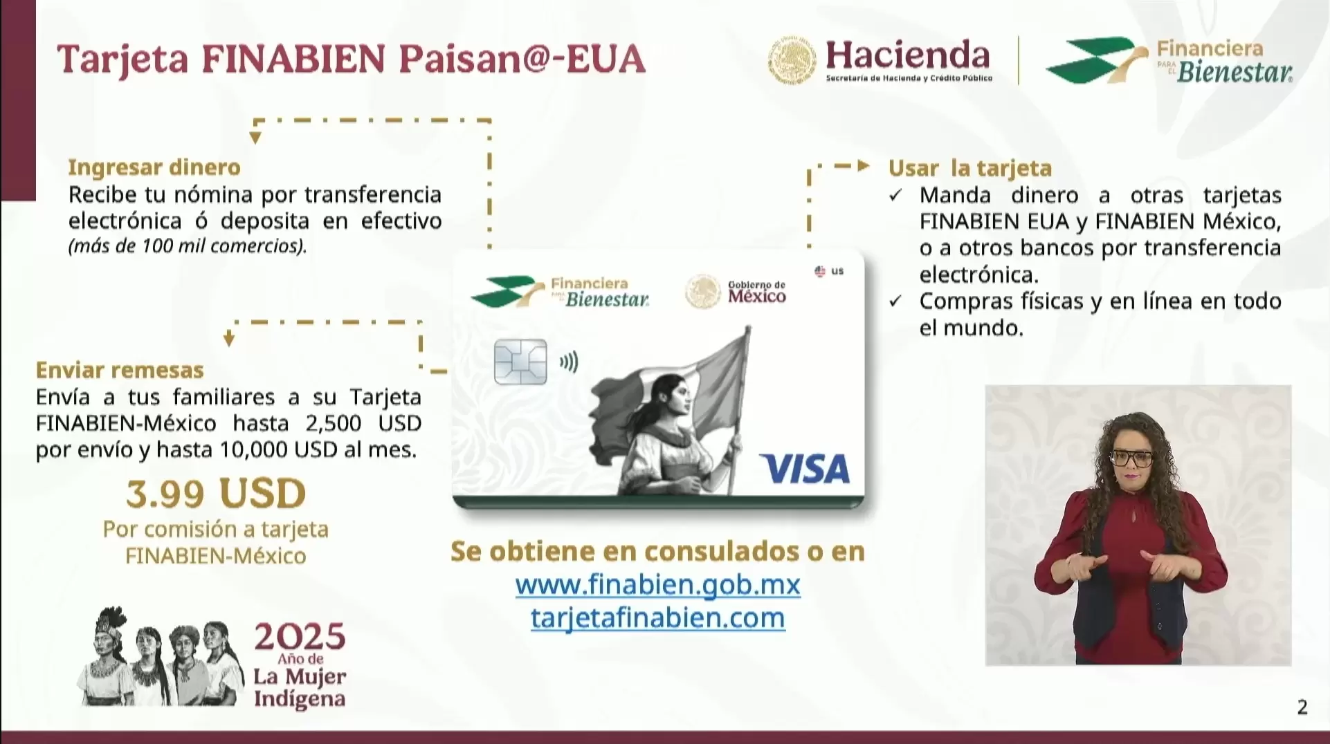 Además de las tarjetas para los migrantes, en México las personas que recibirán las remesas deberán tramitar su propia tarjeta Finabien en cualquiera de las 1,700 sucursales de la financiera en el país. La tarjeta es una opción conveniente y segura, ya que permite guardar hasta 20 mil dólares y puede usarse para compras en cualquier establecimiento.