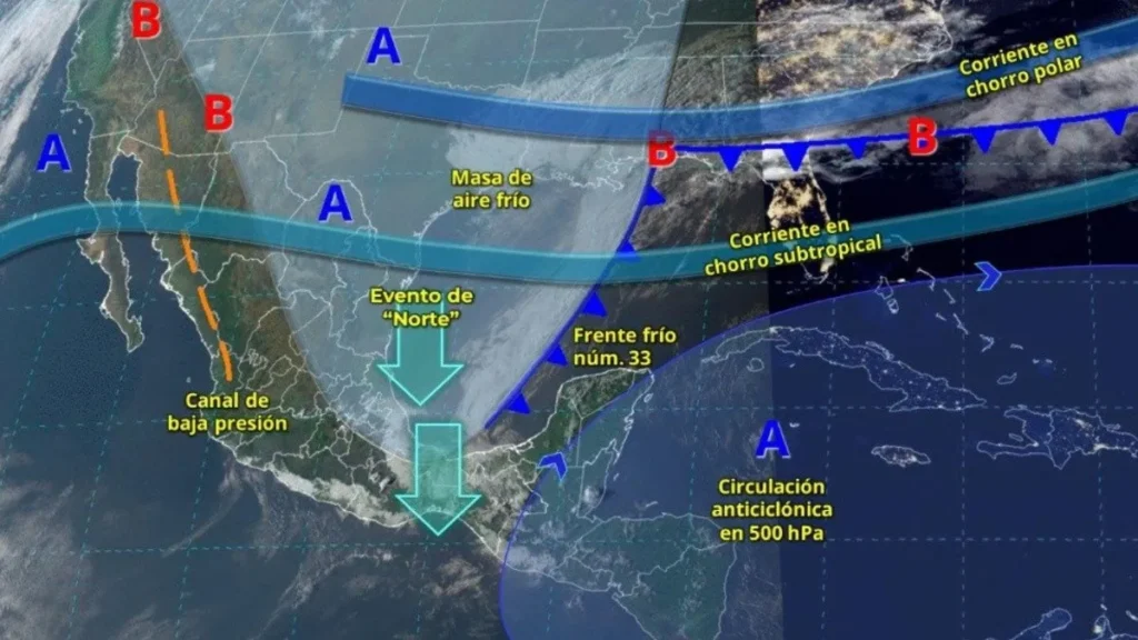 Asimismo, se esperan vientos de 80 a 100 km/h con tolvaneras en Chihuahua, Coahuila y Durango, debido a la interacción del sistema frontal con las corrientes de aire en altura.