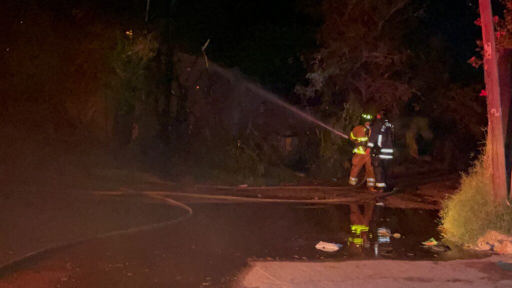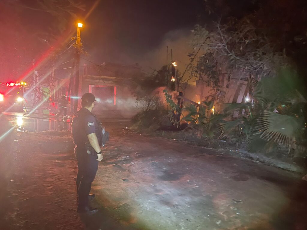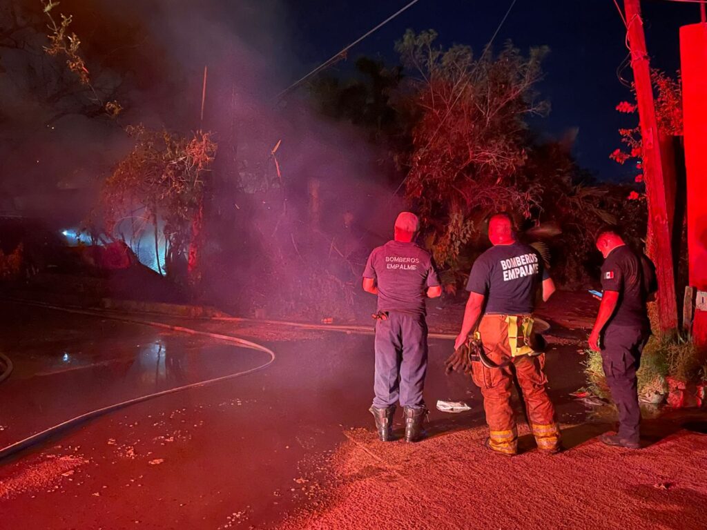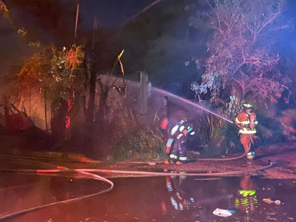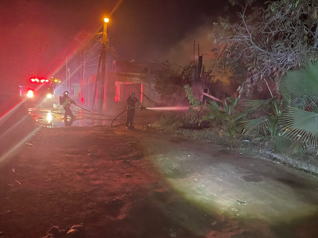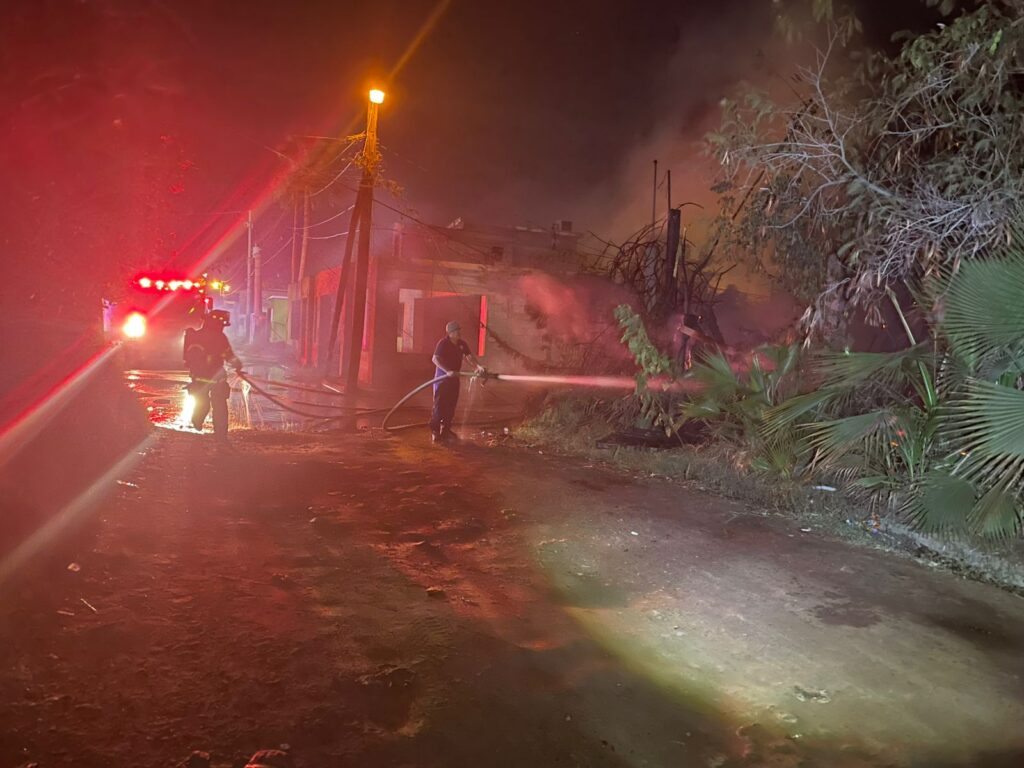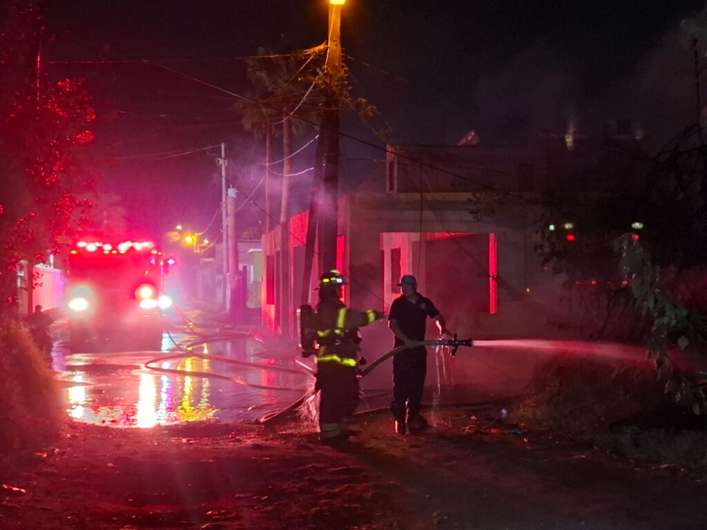 Elementos del Departamento de Bomberos a bordo de tres maquinas extinguidoras y una cisterna, acudieron de inmediato al atender el reporte a través de la línea de emergencia 911, donde se informó alrededor de la 01:20 horas, que dos viviendas se encontraban en llamas.