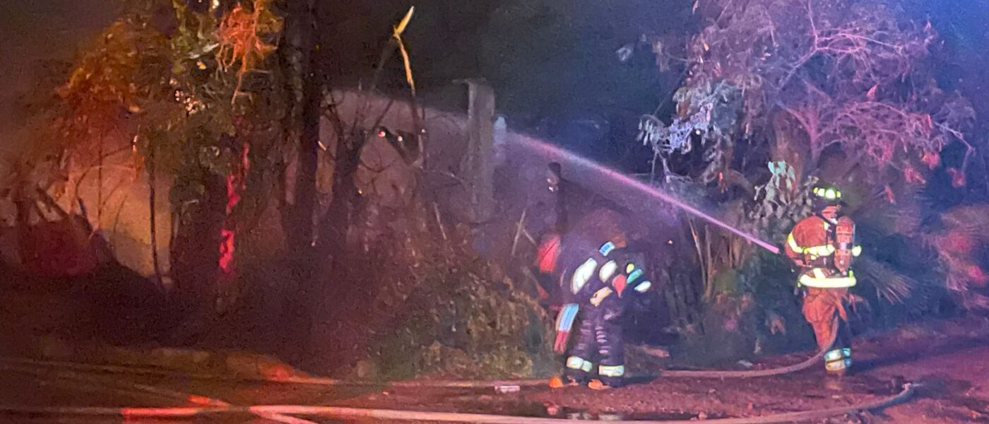 Elementos del Departamento de Bomberos a bordo de tres maquinas extinguidoras y una cisterna, acudieron de inmediato al atender el reporte a través de la línea de emergencia 911, donde se informó alrededor de la 01:20 horas, que dos viviendas se encontraban en llamas.