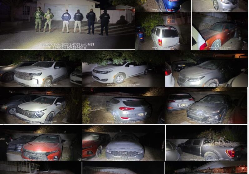Agua Prieta, Sonora.– Como resultado del trabajo firme y coordinado que encabeza el gobernador Alfonso Durazo Montaño, a través de la Mesa Estatal de Paz y Seguridad, se logró el aseguramiento de 24 vehículos, de los cuales 18 cuentan con reporte de robo en Estados Unidos, además de varias unidades con blindaje, entre ellas un vehículo tipo “monstruo”, debilitando de manera directa a las células criminales que operan en la región fronteriza.