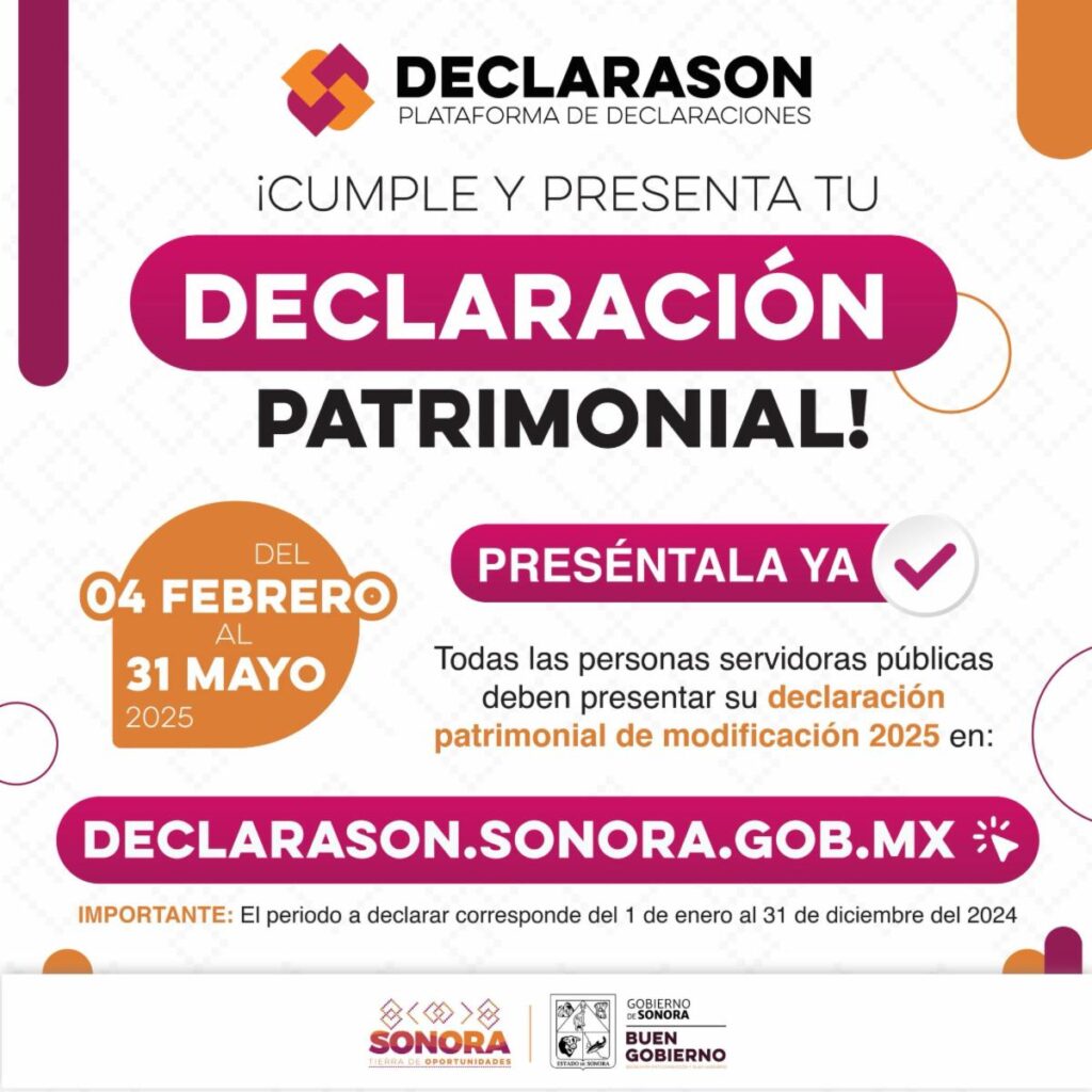 Gobierno de Sonora avanza en la Declaración Patrimonial de Modificación 2025