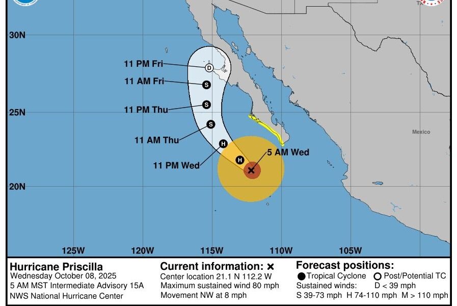 Gobierno de Sonora informa posibles lluvias intensas por “Priscilla”