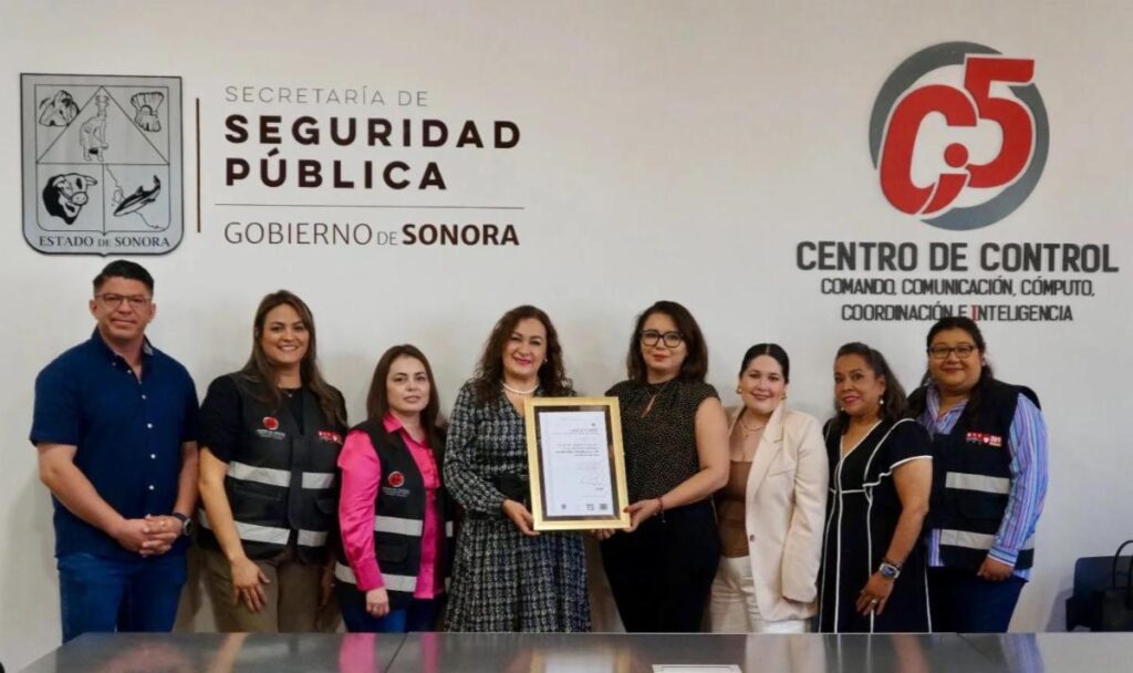 Gobierno de Sonora obtiene certificación por promover espacios libres de violencia en el C5I