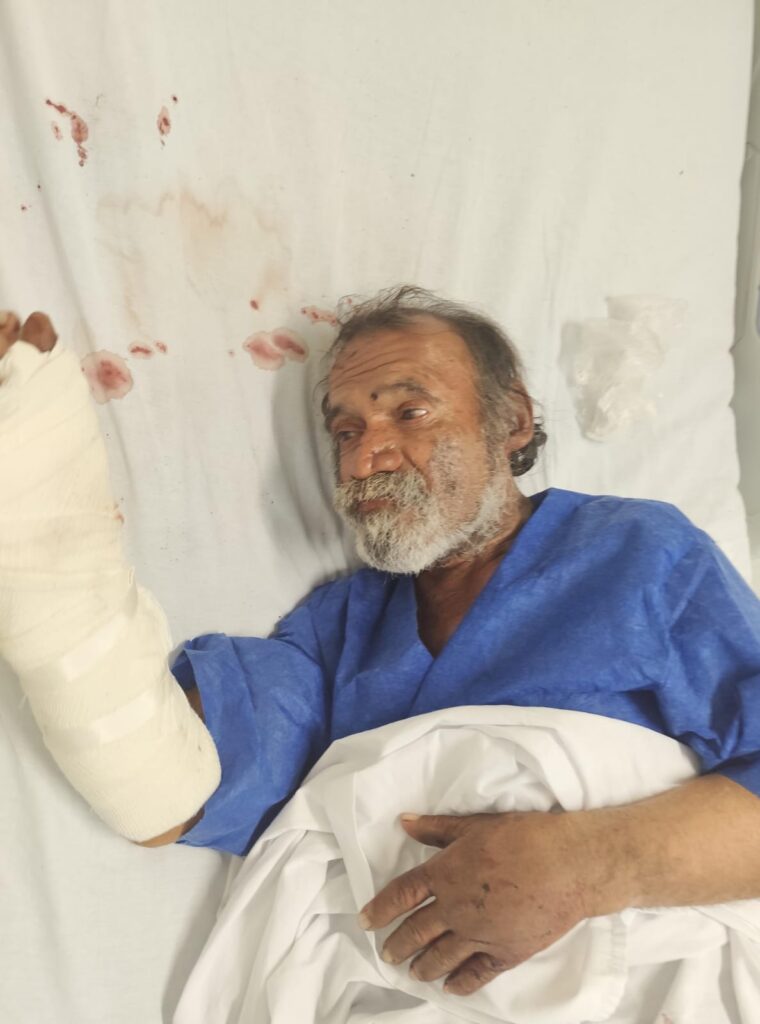 Roberto S., de 72 años, sin domicilio fijo resultó con heridas en las dos piernas y en la cabeza.