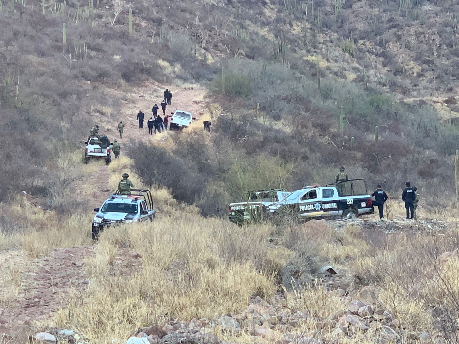 Hasta un predio en la zona cerril en las inmediaciones del camino que conduce hacia las torres de alta tensión de Comisión Federal de Electricidad (CFE) se trasladaron familiares de personas desaparecidas, al atender un llamado anónimo de que en ese lugar había restos humanos a la intemperie.
