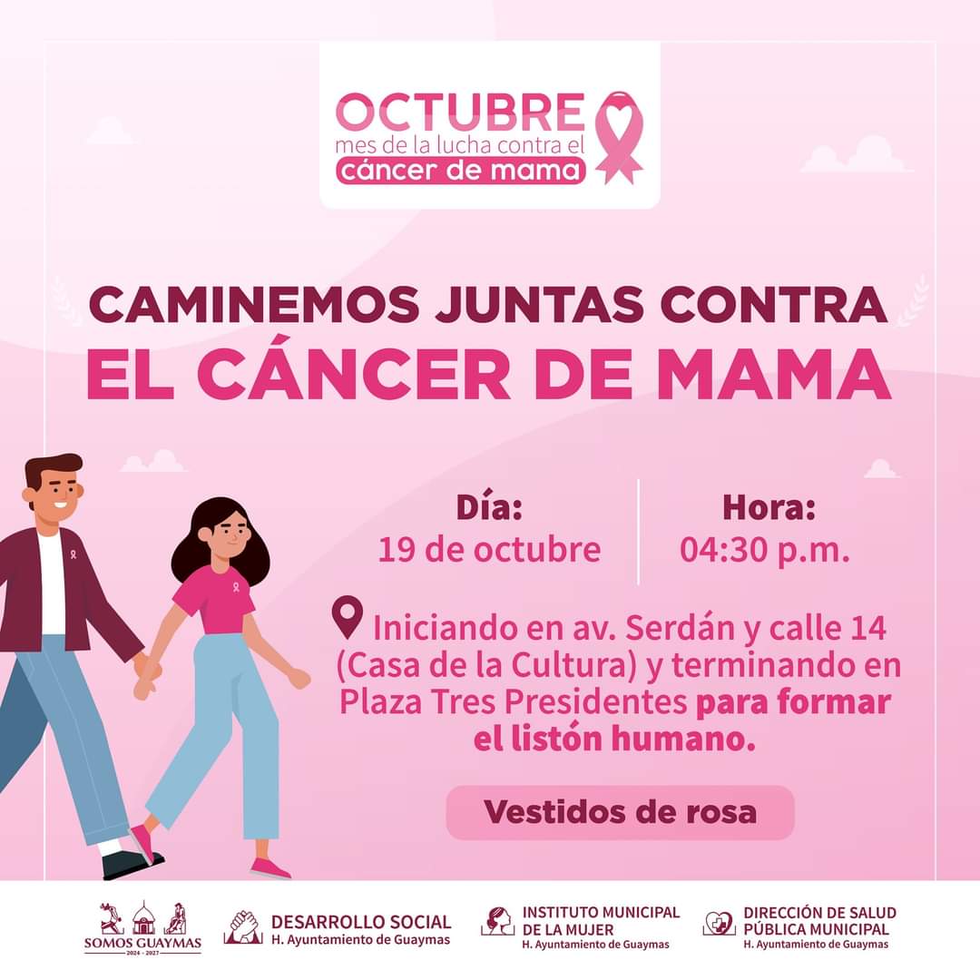 Para concientizar a la población sobre la importancia de la detección temprana del cáncer de mama, el próximo sábado se llevará a cabo caminata en Guaymas.