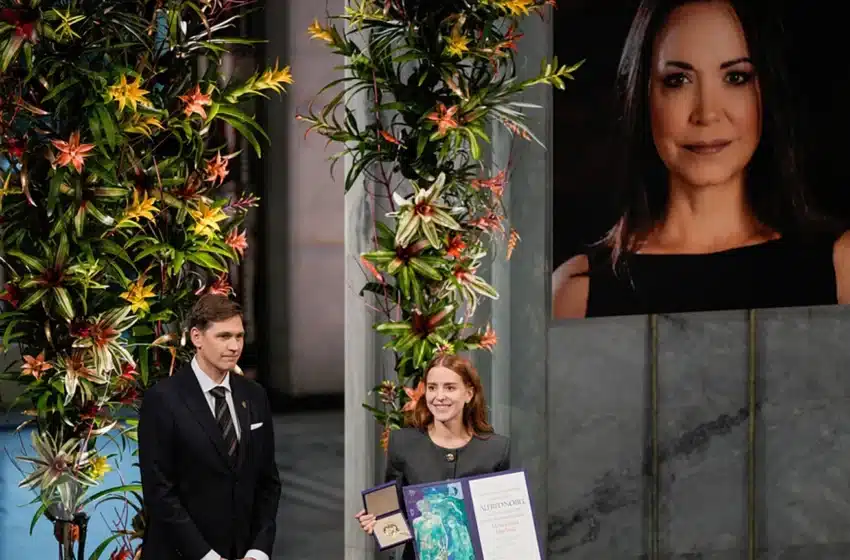 Ana Corina Sosa, hija de la opositora venezolana maria-corina-machado, recibió hoy en Oslo el Premio Nobel de la Paz 2025 en nombre de su madre. Machado no logró viajar a Noruega a tiempo para la ceremonia, aunque confirmó que se dirige a la capital noruega.