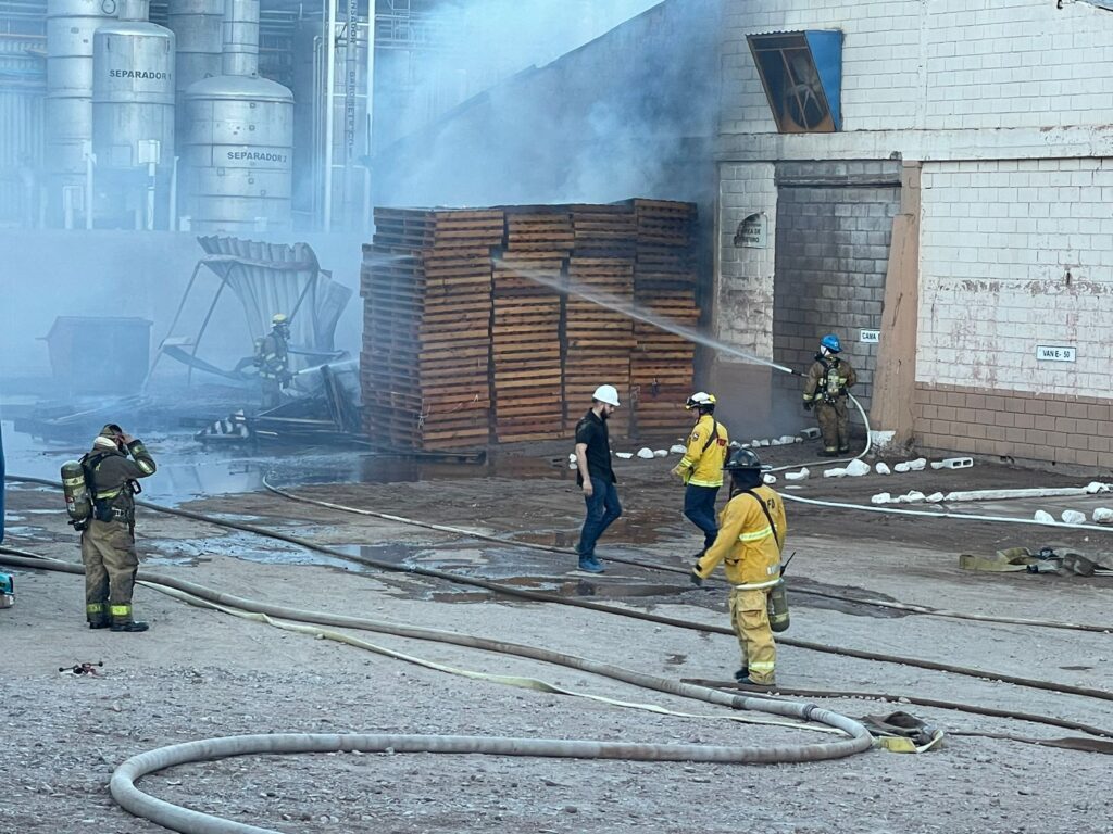 Un incendio de grandes dimensiones donde el fuego afectó una bodega, así como el almacenamiento de tarimas, se registró al interior de la planta pesquera Serconomar, que provocó la evacuación de trabajadores de diversas empresas en el parque industrial “Rodolfo Sánchez Taboada”.