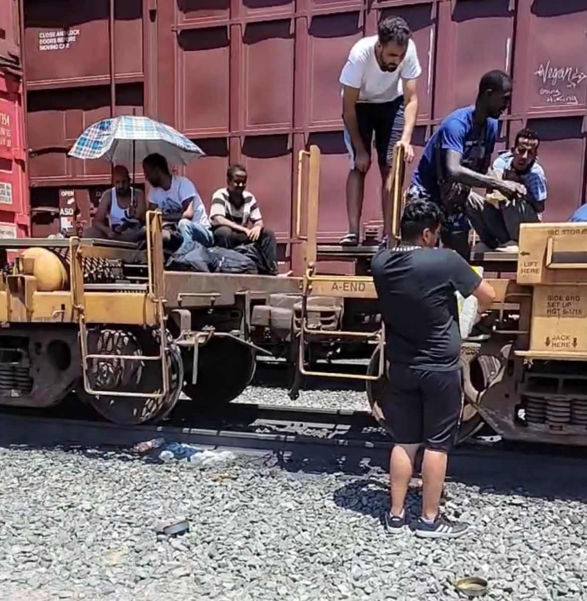 Durante la actual semana elementos de la Policía Estatal intentaron detener a un grupo de 25 personas que iban sobre el tren, pero ante la presencia del Fray Martin Ibarra, solicitó a elementos llamar al Instituto Nacional Migración (INM) para que realizarán su trabajo, logrando que los indocumentados continuarán su camino.
