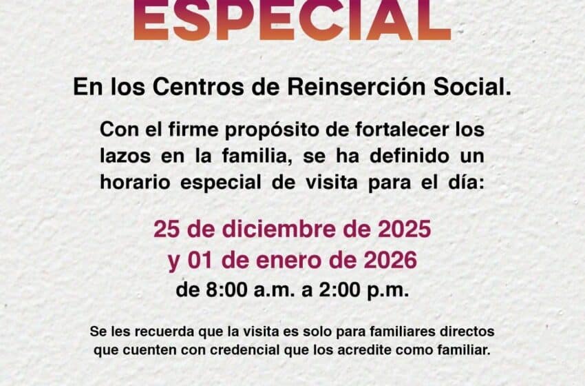 Para el 25 de diciembre y primero de enero del 2026 indicó que, el horario será de 8:00 de la mañana a 2:00 de la tarde, con el fin de que reforzar la comunicación entre padres e hijos, principalmente. Cabe aclarar que esta medida especial será efectiva en los 13 Ceresos de Sonora.