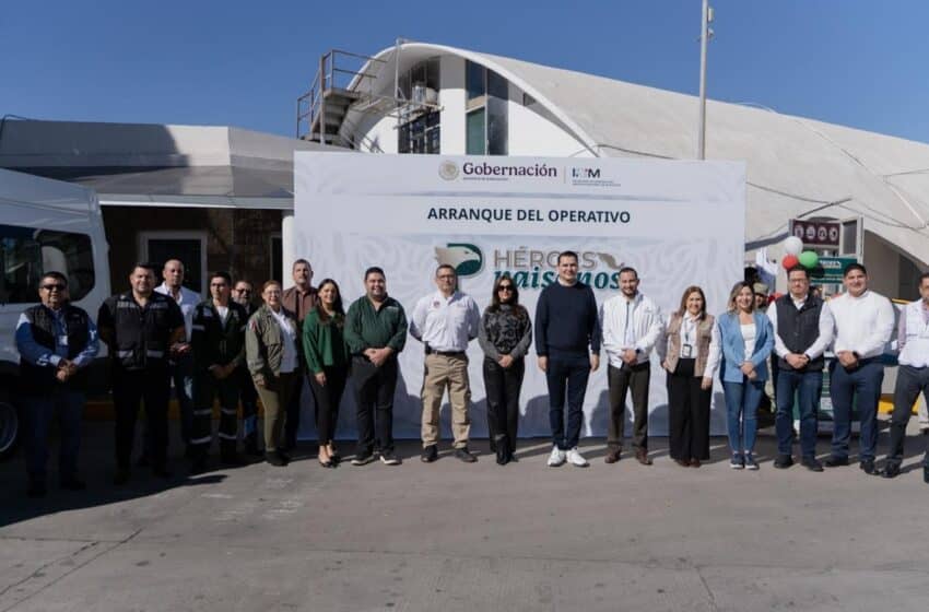 Nogales, Sonora.- En representación del gobernador Alfonso Durazo Montaño, el secretario de Gobierno, Adolfo Salazar Razo, dio el banderazo de inicio al Operativo Especial de Invierno 2025 del Programa Héroes Paisanos, una estrategia del Gobierno Federal destinada a reforzar la atención y protección de las y los connacionales que regresan al país durante la temporada decembrina.