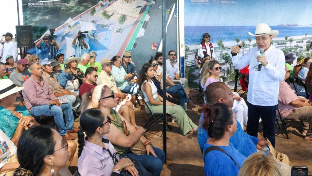 En San Carlos, el mandatario estatal, acompañado por la presidenta municipal de Guaymas, Karla Córdova González; el secretario de Economía y Turismo, Roberto Gradillas Pineda; y la secretaria de Infraestructura y Desarrollo Urbano, Alejandra Castro Valencia, anunció la construcción del Nuevo Malecón en Playa Bahía Delfín, con una inversión de 550 millones de pesos. Esta obra contempla 2.4 kilómetros de extensión, vialidades para ciclistas y transporte urbano, parque inclusivo, miradores, anfiteatro, áreas ecológicas, juegos infantiles, zonas de comercio, estacionamientos y mobiliario urbano de última generación.