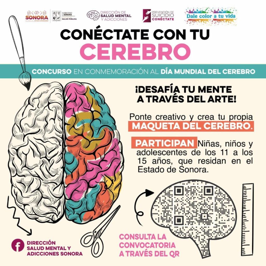Hermosillo, Sonora.- En el marco del Día Mundial del Cerebro, el Gobierno de Sonora, a través de la Secretaría de Salud (SSP), lanzó la convocatoria del concurso “Conéctate con tu cerebro”, dirigido a niñas, niños y adolescentes de entre 11 y 15 años, con el objetivo de fomentar la creatividad y el cuidado de la salud mental.