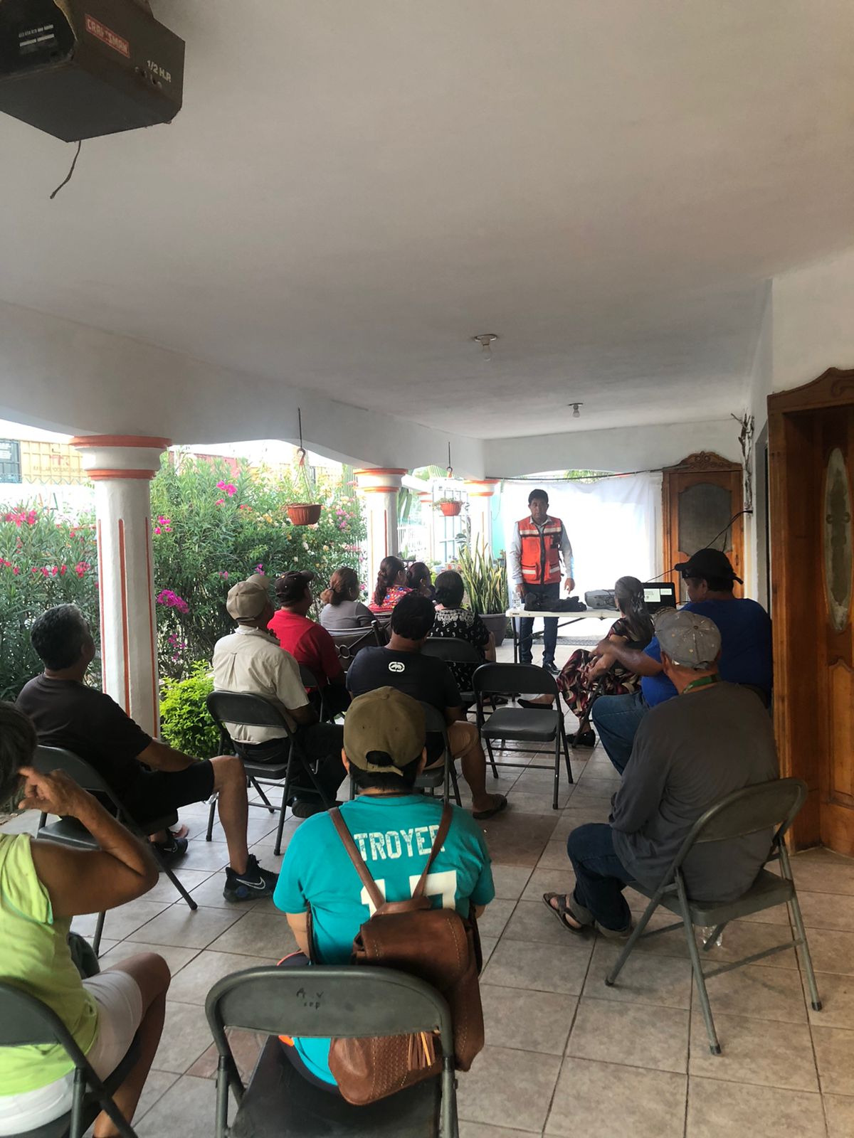 La plática estuvo a cargo del coordinador de la CMPC, José Arnoldo Machado Guerrero, quien en el domicilio de un vecino del sector brindó una detallada explicación del Plan de Contingencia la tarde de ayer lunes.
