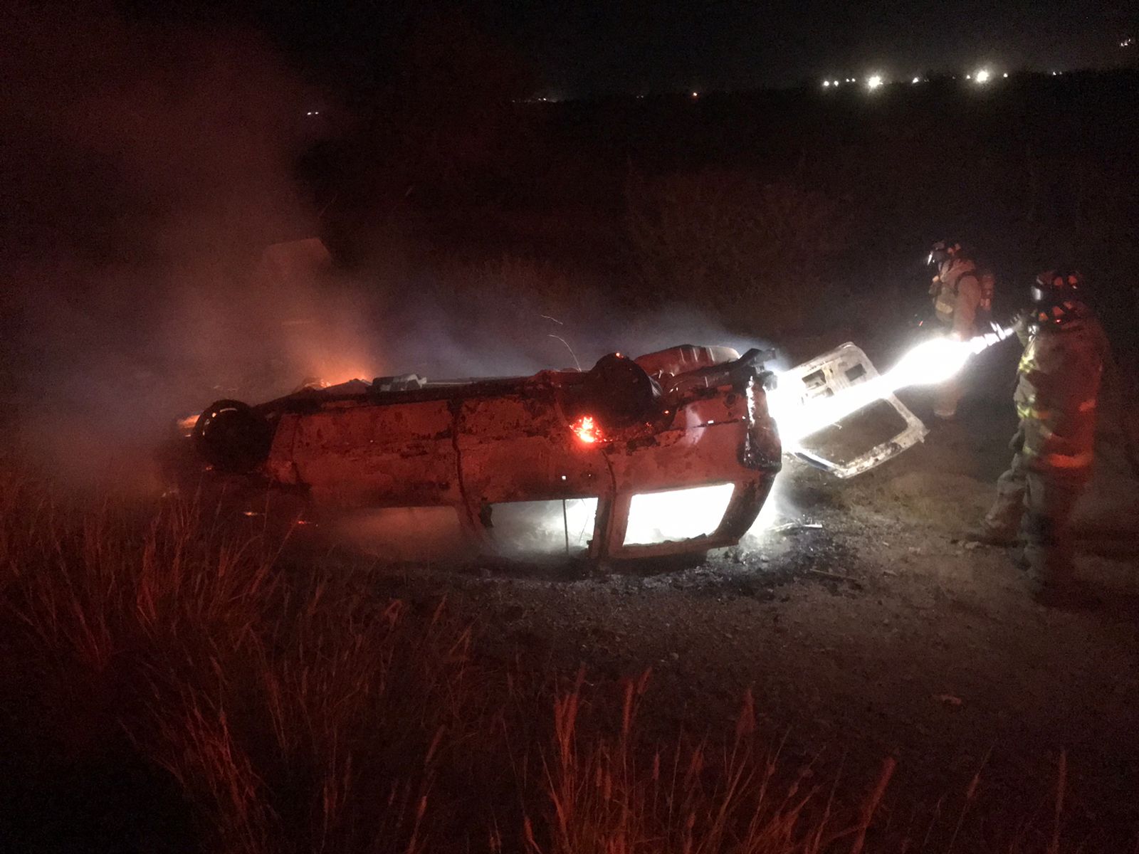 Fue alrededor de las 04:00 horas de este lunes se informó a través de la línea de emergencia 911 que sobre la carretera que conduce a las comunidades del valle regional Guaymas-Empalme, en la curva del ejido ‘San Fernando’, se encontraba una Cherokee volcada e incendiándose.