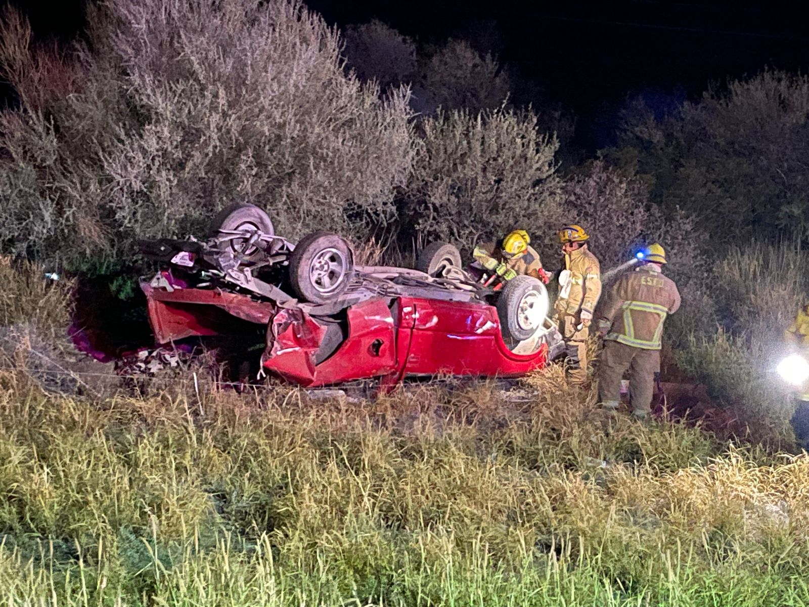Debido al choque el conductor del ‘S-10’ perdió el control cargándose a su extrema derecha, y de esta manera salirse del carril de circulación, donde las personas que viajaban en el área de carga del pick up salieran proyectadas, quedando sin vida entre los arbustos, continuando el Chevrolet su trayectoria dando varias volteretas, para quedar finalmente sobre su toldo con sus neumáticos hacia arriba, totalmente destruido en las cercanías de cerco perimetral.